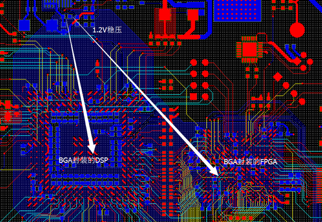3、多電源系統的布線:如FPGA+DSP系統做6層板,一般至少會有3.3V+1.2V+1.8V+5V。