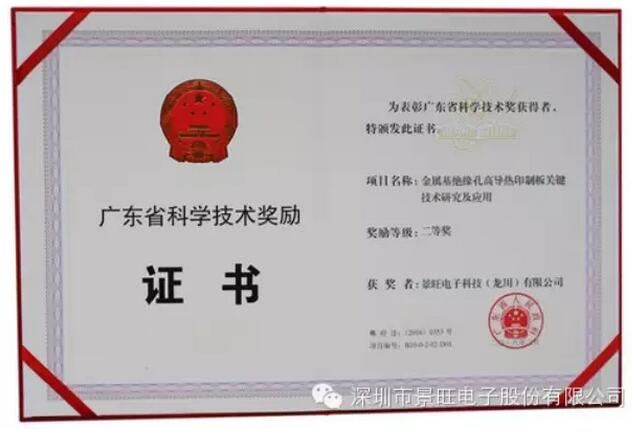 來源:景旺電子喜獲“2015年度廣東省科學技術獎二等獎”