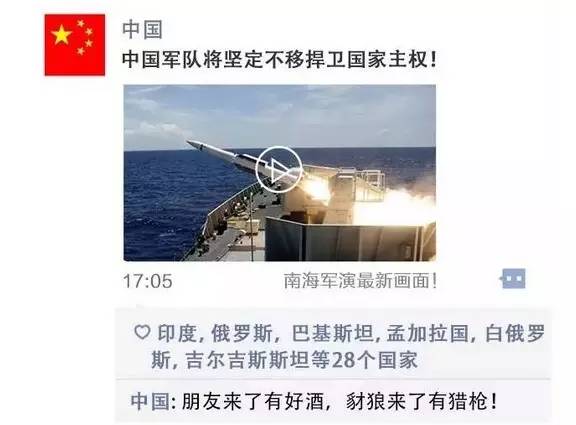 對于屬于中的南海,中可以堂堂正正地、強硬有力地強調主權,可以大聲說:朋友來了有好酒,豺狼來了有獵槍!不再像清朝政府那樣,一再賠款割地,喪權辱。
