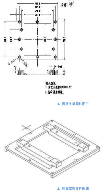 基于以上幾點要求,進行了smt絲印機網板支架的通用性設計與改進,其設計圖紙附后圖。