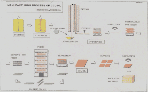 電子產品在多功能化、高I/O數及小型化趨勢下,IC構裝技術隨之改變,因此由1980年代以前的通孔插裝(PTH Insertion),1980~1993年大幅變革成表面黏裝smt方式,進展到至今以BGA、CSP及Flip Chip為主的構裝方式,由IC載板生產成本來看,材料價占比重高達40%~50%,原料中又以BT樹脂(Bismaleimide Triazine Resin)為主,BT樹脂是日本三菱瓦斯化學公司于1982年經拜耳化學公司技術指導所開發出來,擁有專利也商業化量產,因此是目前全球大的BT樹脂制造商。