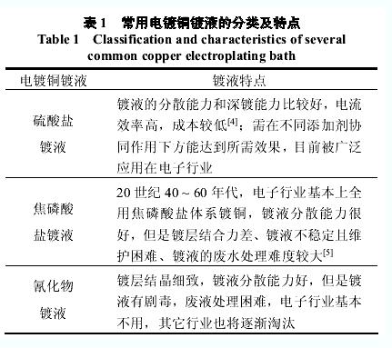 常用電鍍銅鍍液的分類及特點列于表 1。
